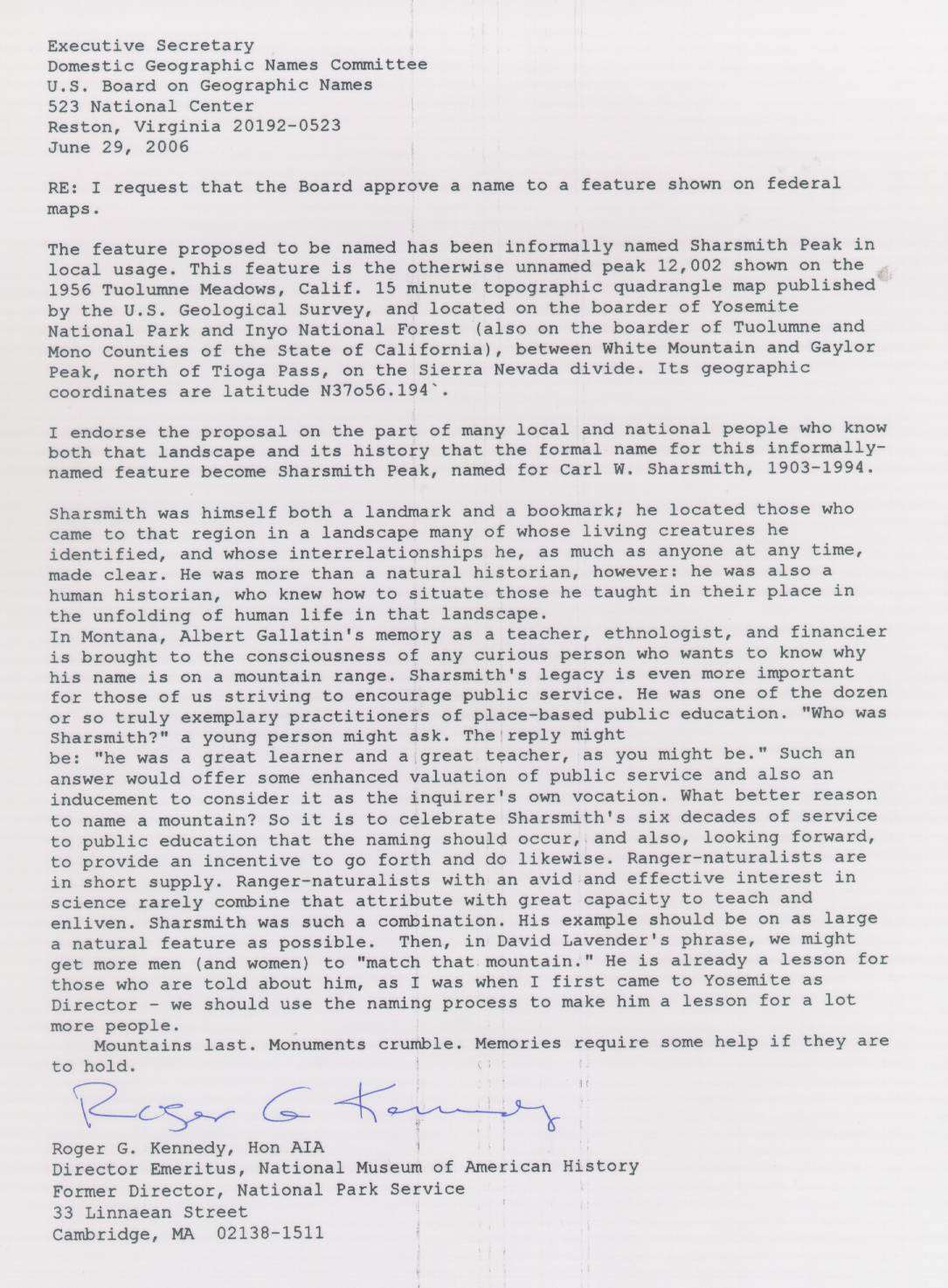 Home & Synopsis/Status Reports   Purpose & Method  Who was Carl Sharsmith?  Why name a Yosemite feature for Carl?/Origin of Proposal   Which feature should be named for Carl?  How can a feature be named for Carl?  SUMMARY OF SUPPORTING STATEMENTS    Contacts/Resources Webmaster Search Form