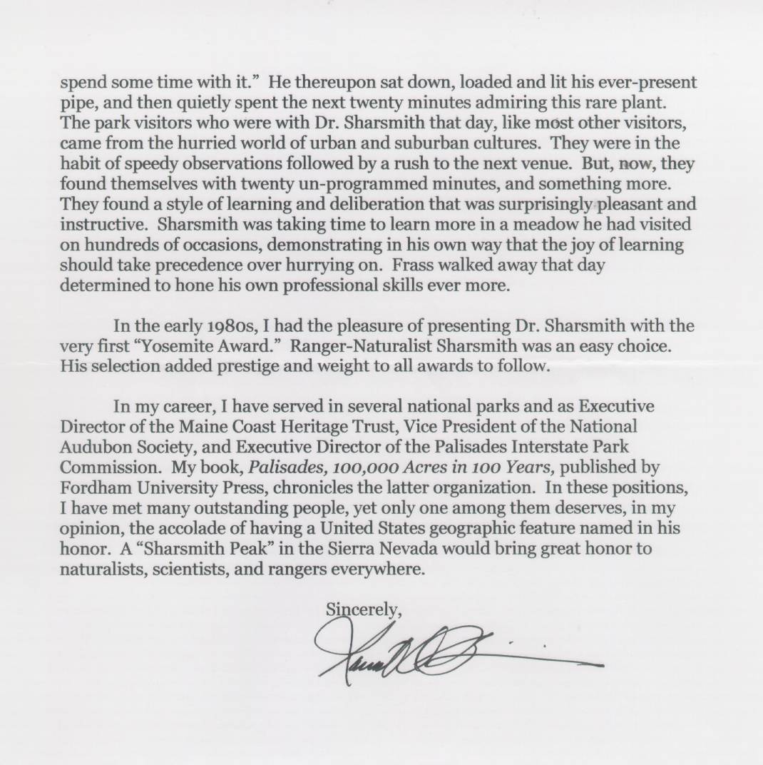 Home & Synopsis/Status Reports Purpose & Method Who was Carl Sharsmith? Why name a Yosemite feature for Carl?/Origin of Proposal Which feature should be named for Carl? How can a feature be named for Carl? SUMMARY OF SUPPORTING STATEMENTS Contacts/Resources Webmaster Search Form