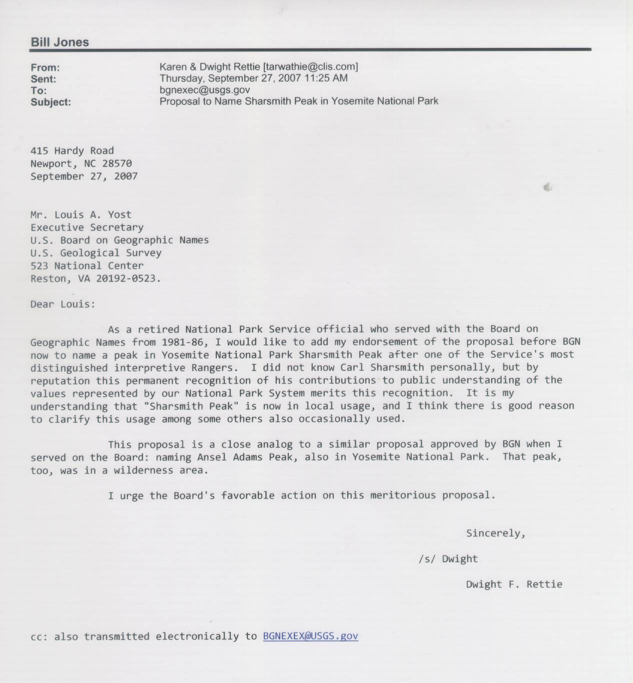 Home & Synopsis/Status Reports Purpose & Method Who was Carl Sharsmith? Why name a Yosemite feature for Carl?/Origin of Proposal Which feature should be named for Carl? How can a feature be named for Carl? SUMMARY OF SUPPORTING STATEMENTS Contacts/Resources Webmaster Search Form
